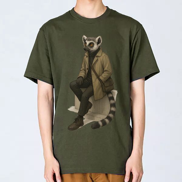 • おしゃれワオキツネザルTシャツ[オリーブ]